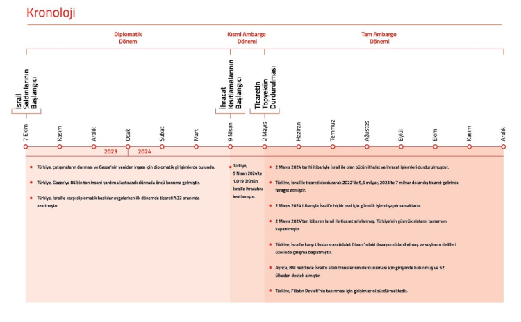 Türkiye’nin İsrail ile Ticareti Durdurma Süreci Hakkında Kapsamlı Bilgi Notu hazırlayan bakanlık, gün gün kronolojiyi raporlaştırdı.