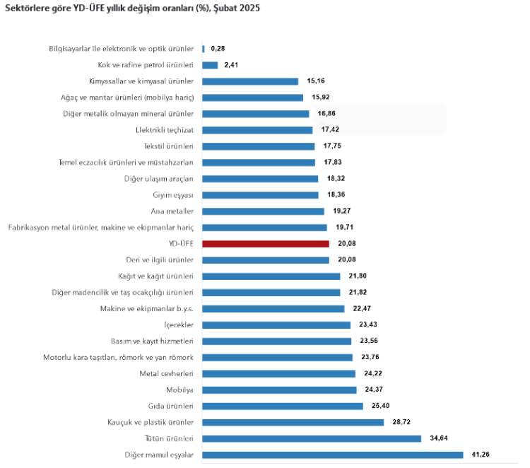 ANKARA (İGFA) – TÜİK, Şubat ayına ilişkin YD-ÜFE verilerini açıkladı.