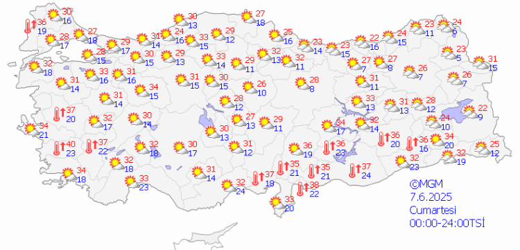 Öte yandan 5-9 Haziran 2025 tarihlerinde Ankara’da 32°C, İstanbul’da 31°C ve İzmir’de 35°C’ye ulaşması öngörülen sıcaklıklar, bayram boyunca yaz havasını hissettirecek.