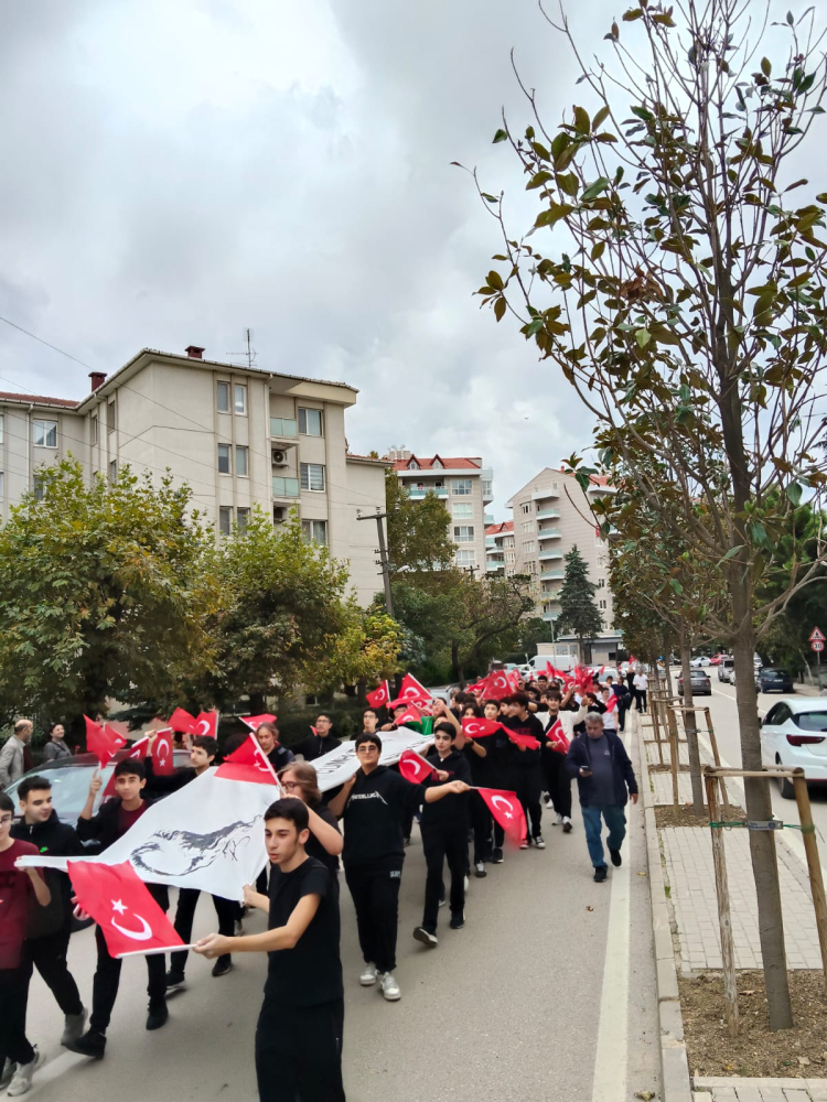 Öğrenciler, ellerinde Türk bayraklarıyla yolda karşılaştıkları vatandaşlara ve esnafa karanfiller dağıtarak Cumhuriyet Bayramı’nı kutladılar. Yaklaşık 30 dakika süren yürüyüş, çevredeki vatandaşlar tarafından büyük ilgi ve alkışlarla karşılandı.