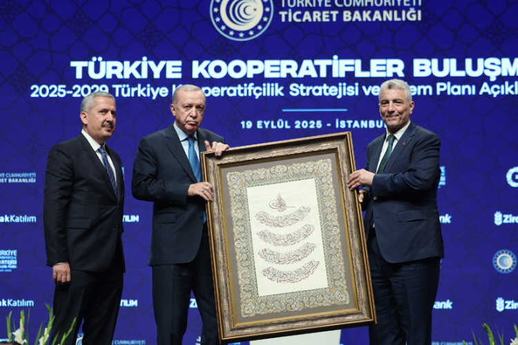 “6,5 milyonu aşkın ortağı olan 62 bin kooperatifimiz var; bu, ekonomik hayatımız için kıymetli bir kazanım” diyen Cumhurbaşkanı Erdoğan, “AB’de 165 milyonu aşkın ortağı ve 250 bin kooperatif varken, bizde arzu edilen seviyede değiliz. Kooperatifler, tarımdan sanayiye, kadın girişimciliğinden enerjiye kadar yerel kalkınmanın temel aktörü hâline geldi. Son yıllarda dünyada da ön plana çıkıyorlar” diye konuştu.