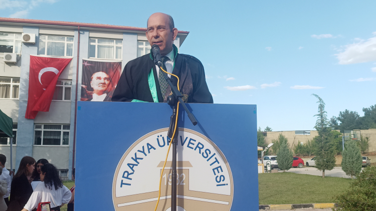 Keşan Meslek Yüksekokulu Öğretim Üyesi Dr. Aydın Güllü, mezunlara, “Bilgi ve beceriyle donanmış olarak yeni bir başlangıç yapıyorsunuz. Dürüstlükten ödün vermeden yolunuza devam edin,” tavsiyesinde bulundu.
