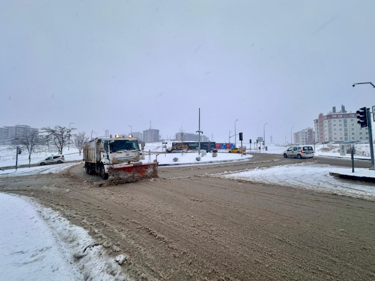 Gaziantep Büyükşehir Belediyesi, etkisini sürdüren kar yağışıyla birlikte ana arterler,