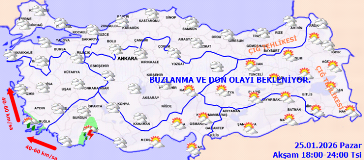 ANKARA (İGFA) – Meteoroloji Genel Müdürlüğü, 25 Ocak Pazar gününe ilişkin hava tahmin raporunu yayımladı.