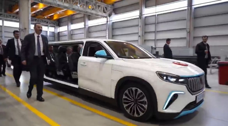Cumhurbaşkanı Erdoğan, Kahramankazan’da BMC Ankara Tank ve Yeni Nesil Zırhlı Araçlar Üretim Tesisi Açılışı ve İlk Yeni Altay Tankları Teslimat Töreni’ne özel üretim limuzun Togg’la geldi.