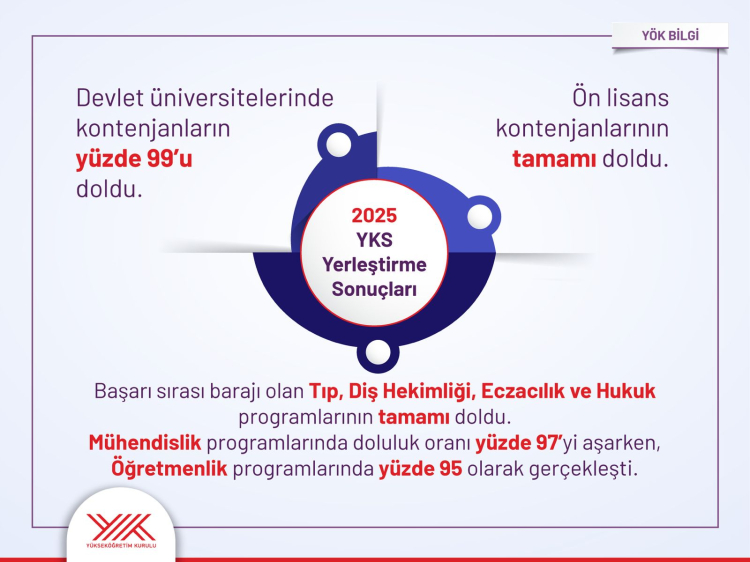 ANKARA (İGFA) – Yükseköğretim Kurulu (YÖK) Başkanı Erol Özvar, 2025 Yükseköğretim Kurumları Sınavı (YKS) yerleştirme sonuçlarına ilişkin sosyal medya hesabından yaptığı paylaşımda, sonuçların Cumhurbaşkanı Recep Tayyip Erdoğan’ın Türkiye Yüzyılı vizyonu doğrultusunda yükseköğretimde yenilikçi yaklaşımların başarıyla karşılık bulduğunu gösterdiğini ifade etti.