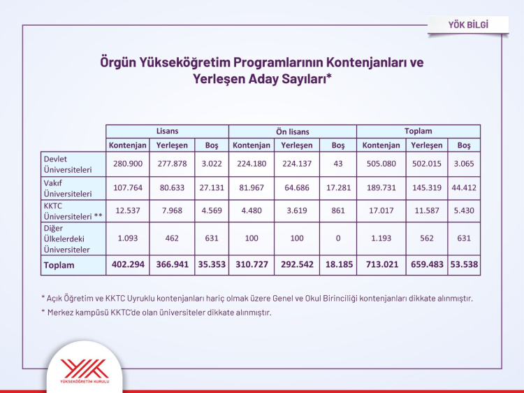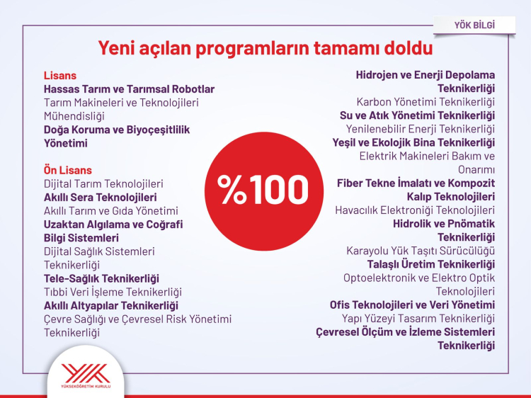 “Hem bugünün hem geleceğin iş gücü piyasasında kritik rol oynayacak yeni programların tamamı doldu” diyen Özvar, “Her 5 adaydan biri ilk tercihine yerleşti. Yüzde 42’si ilk üç tercihinden birini kazandı. İlk 5 tercihinden birine yerleşen adayların oranı yüzde 56 olarak gerçekleşti” dedi.