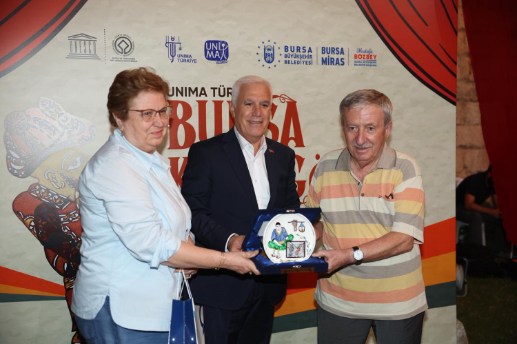 Karagöz’ün Bursa’nın mizahını ve halk dilini, Hacivat’ın ise zarafet ve aklı temsil ettiğini vurgulayan Başkan Bozbey, Bursa’nın dünyaya armağan ettiği eşsiz bir miras olduğunu belirterek, Karagöz sanatına katkılarından dolayı Şinasi Çelikkol ve Ünver Oral’a Bursa Miras Yaşam Boyu Başarı Ödülü takdim etti.