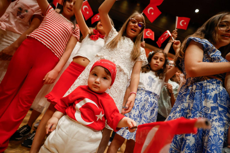 Konser sonunda İzmir Büyükşehir Belediye Başkanı Dr. Cemil Tugay ve tüm salon ellerinde Türk bayraklarıyla 23 Nisan şarkısı söyledi.