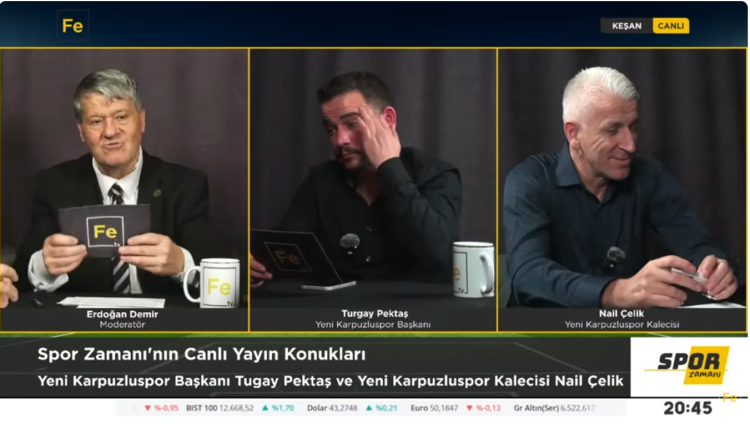 Fe TV ekranlarında Erdoğan Demir’in hazırlayıp sunduğu Spor Zamanı programının konukları, Edirne 1. Amatör Lig B Grubu ekiplerinden Yenikarpuzluspor Kulüp Başkanı Turgay Pektaş ve takımın tecrübeli kalecisi Nail Çelik oldu. Programda kulübün hedefleri, takımın mevcut durumu, altyapı çalışmaları ve bölge futboluna dair değerlendirmeler ele alındı.