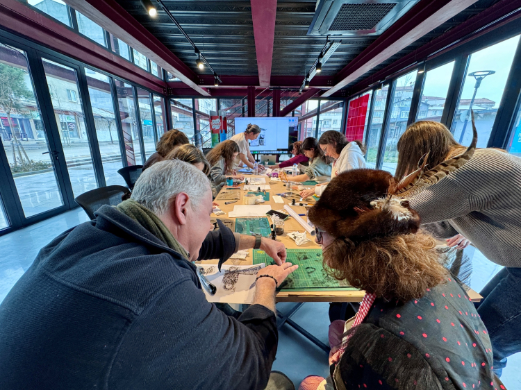 Burcu Güven eşliğinde çalışmalar yapan katılımcılar; geçirgenlik, iz, tekrar ve dönüşüm kavramları üzerine yoğunlaştı. Şeffaf bant ve mürekkep kullanılarak yapılan çalışmalarda, malzemelerin sınırları zorlanarak katmanlı dokular elde edildi. Katılımcılar bu süreçte hem teorik bir tartışma ortamı buldu hem de malzemeyle doğrudan ilişki kurarak kendi üretimlerini gerçekleştirdi.